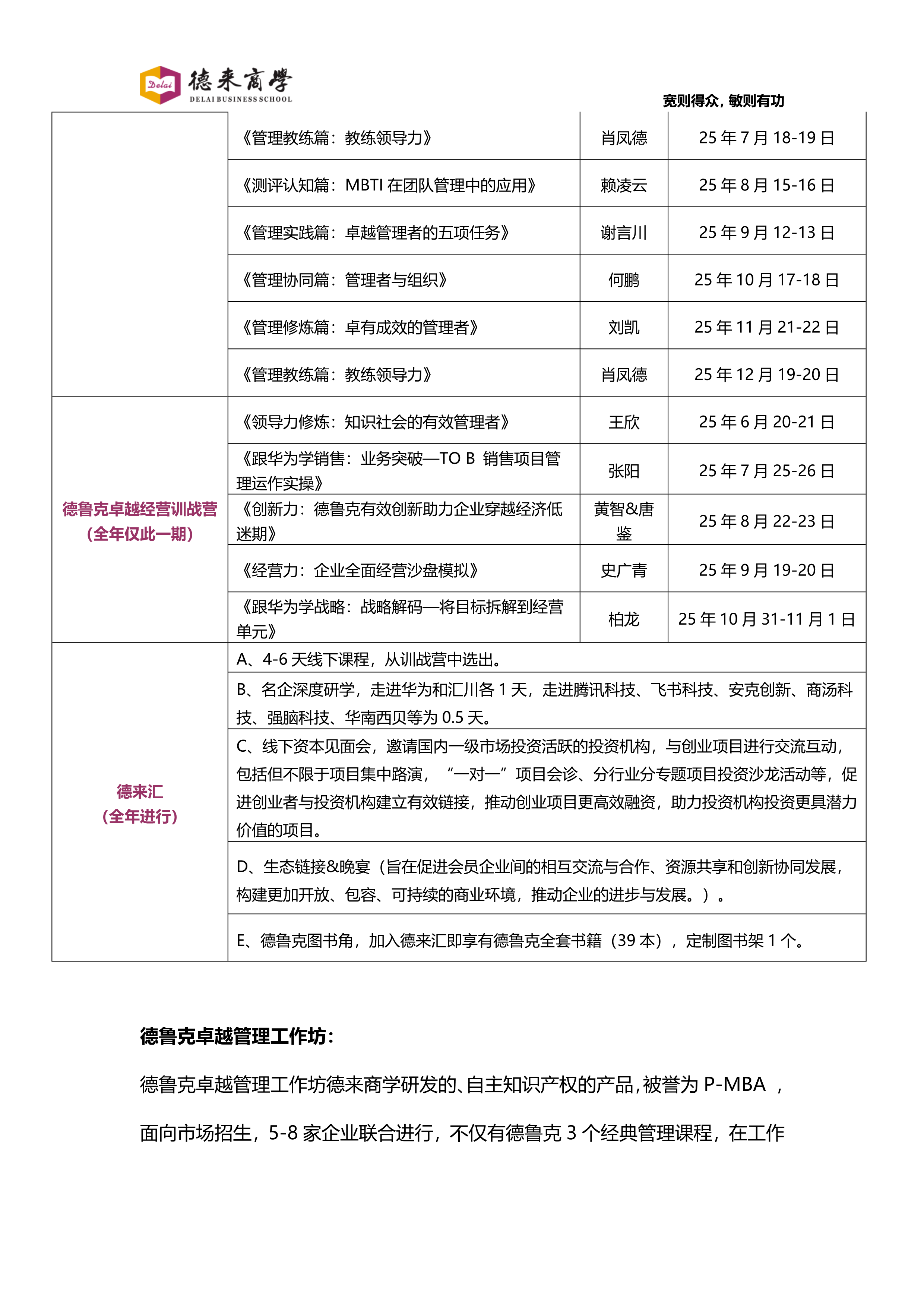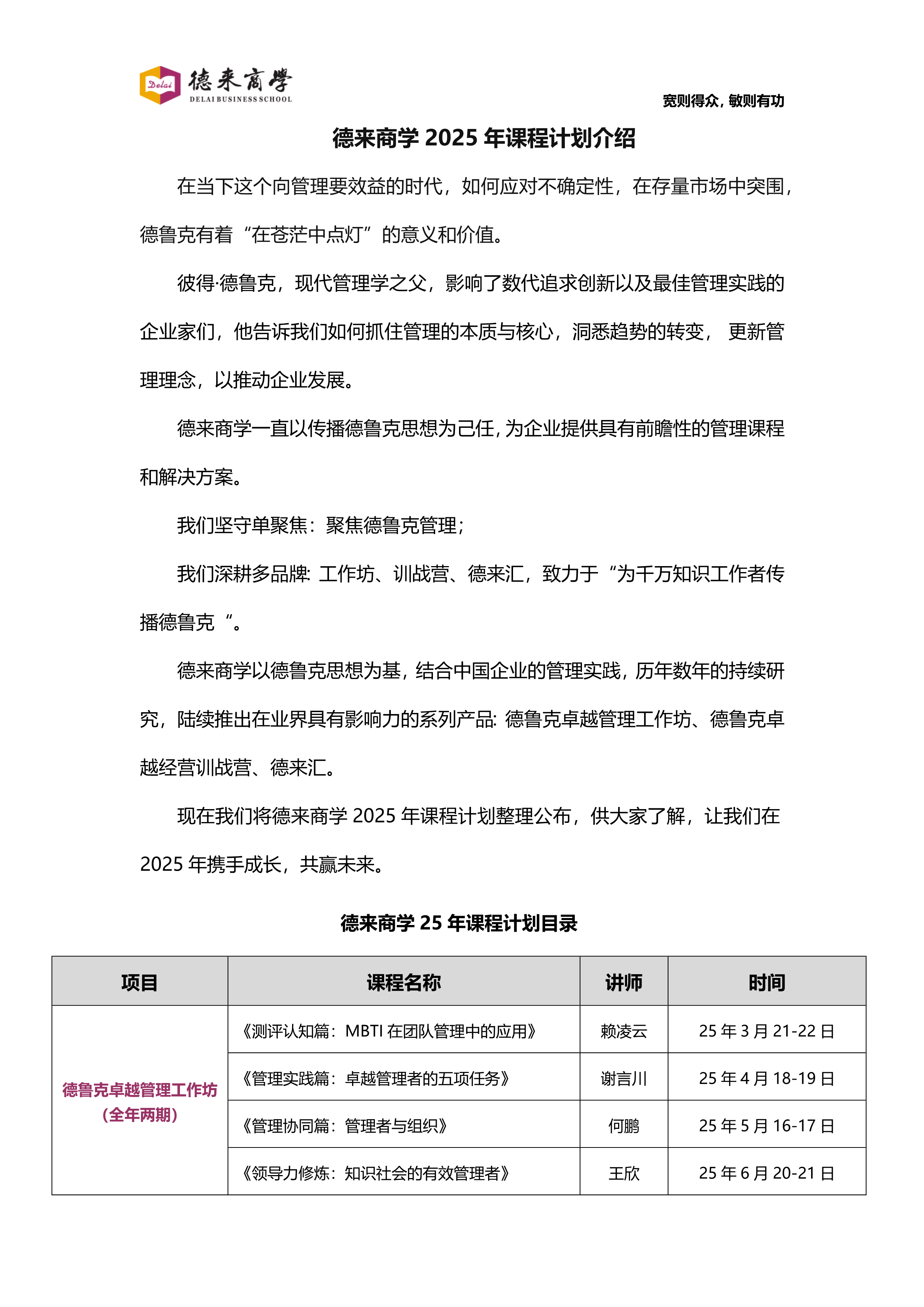 德來商學(xué)2025年課程計(jì)劃介紹發(fā)布時(shí)間:2024-12-25 上一個(gè):匯川技術(shù)管理研學(xué)之旅(2025年2月28日)下一個(gè):德來商學(xué)最新產(chǎn)品結(jié)構(gòu)圖
