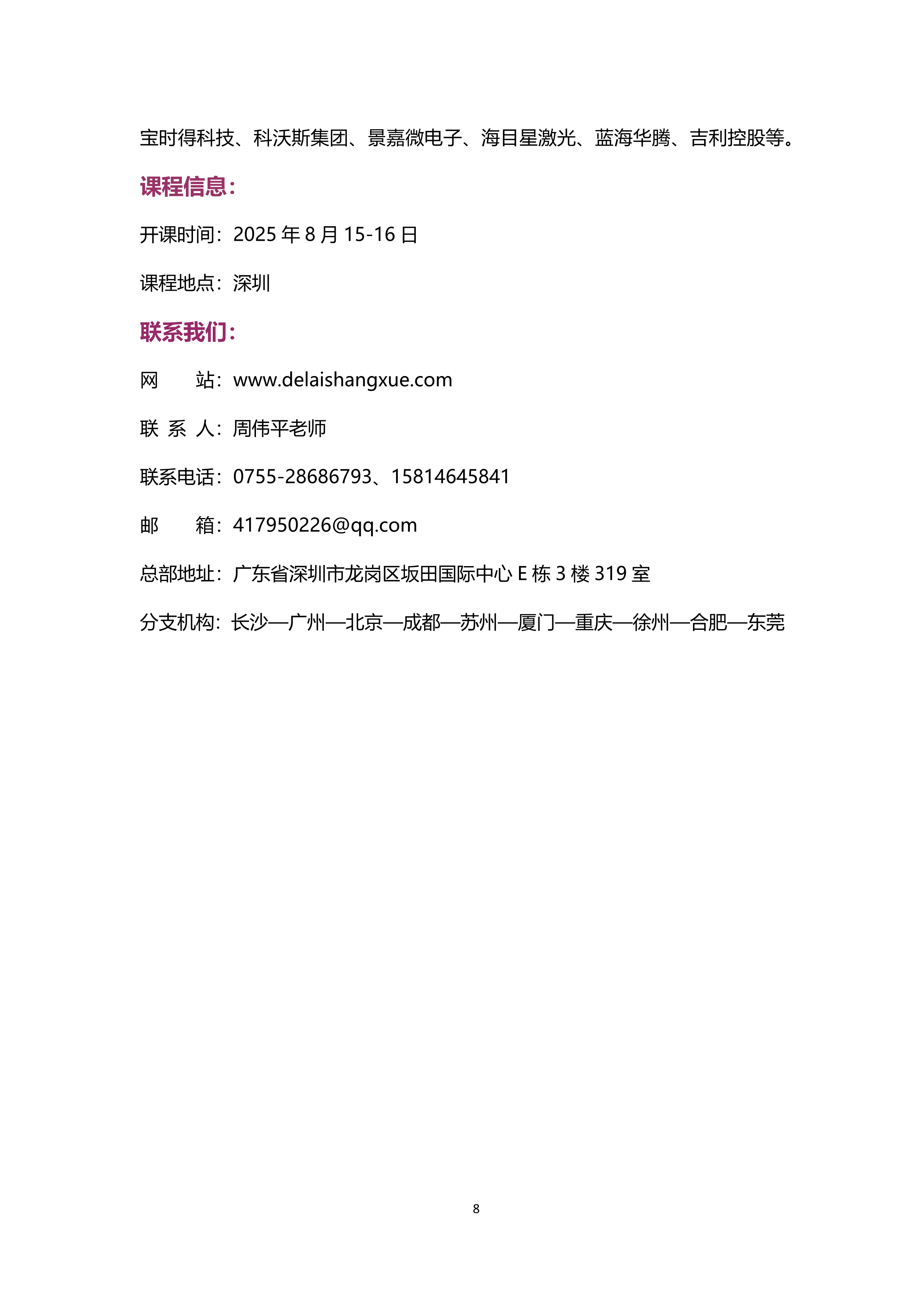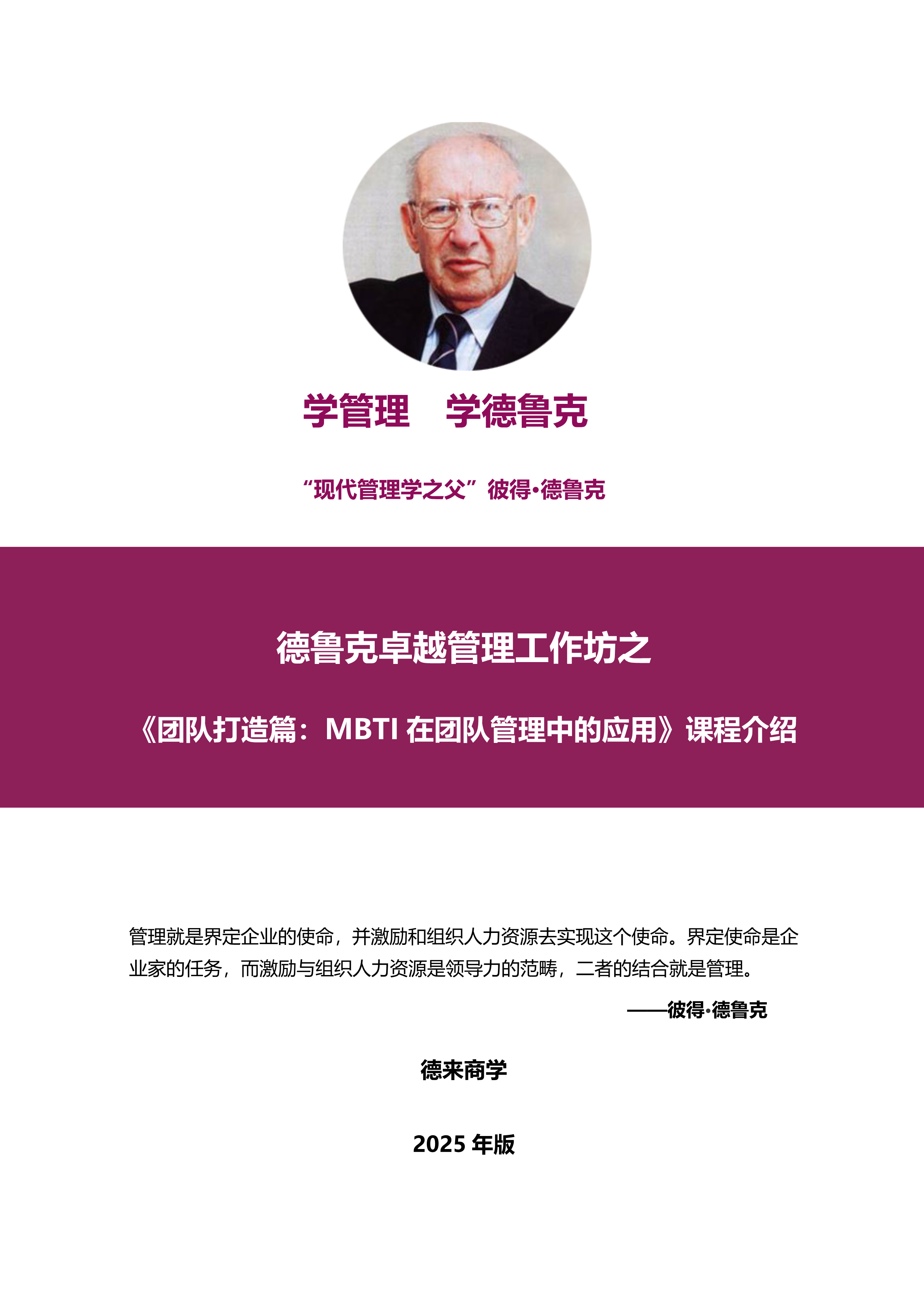 深圳2025年8月15-16日@賴凌云老師《團隊打造篇:MBTI在團隊管理中的應(yīng)用》發(fā)布時間:2025-07-11 上一個:黃智老師&唐鑒老師@8月22-23日《創(chuàng)新力:德魯克有效創(chuàng)新助力企業(yè)穿越經(jīng)濟低迷期》下一個:德魯克卓越經(jīng)營訓(xùn)戰(zhàn)營(2025年)
